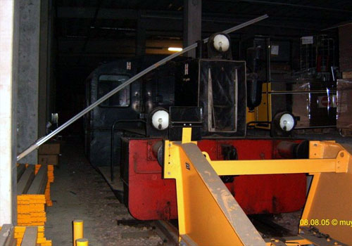 REWE: Die abgestellte Köf in der Halle. (Fotos: 08.08.2005, Manfred Uy)