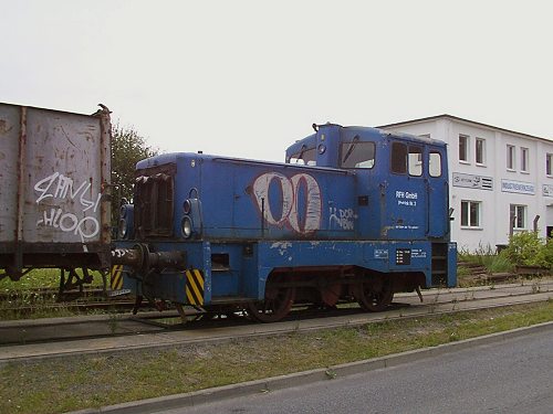 11.05.2002/ gm/ Im Bereich des Fischereihafens werden noch einige Anschlüsse bedient und dies scheinbar auch noch mit Loks der RFH. Zwei kleinere Exmplare davon standen auf einem Stumpfgleis im Gelände. In einem nahen Lokschuppen stand außerdem eine V60D mit der Betriebsnummer 1, die scheinbar auch noch eingesetzt wird.