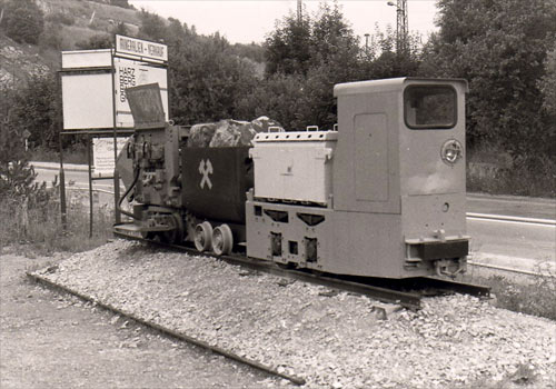 Besucherbergwerk “Drei Kronen und Ehrt”: An der Straße steht die LEW FNr. 16170 als Denkmal. (Foto: 1991, Frank Glaubitz)