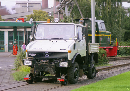 RWE Kraftwerk Niederaußem: Zweiwege-Unimog im Kraftwerk Niederaußem. (Foto: .09.1993, Peter Ziegenfuß)