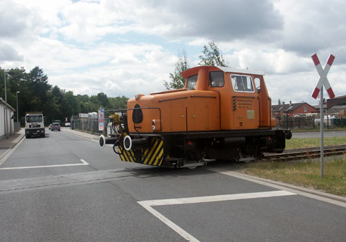 07.06.2005/ jm/ Der Anschluss zum Werk wird offenbar nicht mehr bedient. Die Lok (O&K FNr. 26621/1967, Typ MB9N) wurde nicht gesichtet, sie kann aber noch auf dem Werksgelände stehen.