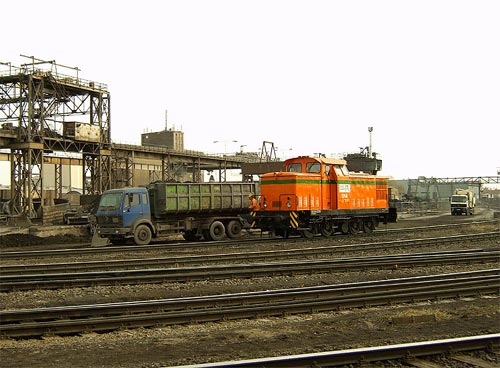 .10.2010/ wn/ Beim Stahlwerk dürfte die Lokaufstellung noch stimmen, genau die genannten Loks habe ich 2008 und 2010 beobachtet. Meist ist zurzeit D 14 im Einsatz. Es gibt an der Gröbaer Straße zudem einen öffentlichen Bahnübergang der Werkbahn, der seit ca. 2008 deutlich öfter befahren wird, da die Firma sich erweitert hat und in ihren eigenen Drahtwerken Waggons zustellt bzw. abholt.