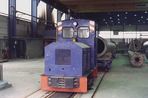 15.04.1999/ jm/ Nach Voranmeldung konnten die beiden schmalspurigen Lokomotiven besichtigt werden. Dies sind nicht etwa Museumsstücke, sondern werden noch zum Verschieben von Masten aus der Halle ins Freigelände verwendet. Dabei dient eine Lok als Reserve. Früher gab es auch eine Feldbahn zur Grube, diese ist aber durch Förderbänder ersetzt worden. Dort waren bis etwa 1992 vier Lokomotiven vom LKM-Typ Ns2h im Einsatz. Bis in die 1960er gab es auch kleine offene Lokomotiven.
