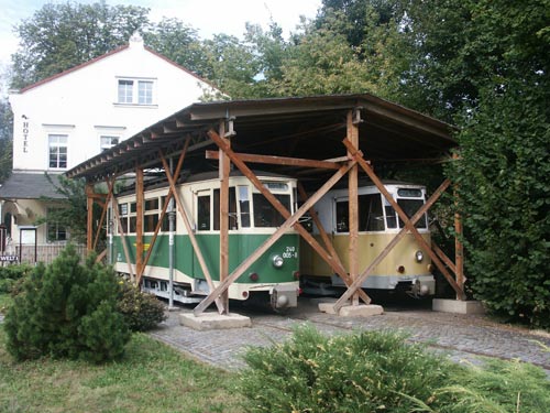 14.09.2004/ jm/ Der Förderverein Lockwitztalbahn e.V. wurde 1993 in Kreischa mit dem Ziel gegründet, einen Triebwagen der einstigen Straßenbahn (Lockwitztalbahn, 1000 mm Spurweite) als Denkmal aufzustellen. Am 2. Oktober 1993 kehrte der Triebwagen 240 005-8 von der Kirnitztalbahn zurück. Da man bei dieser Gelegenheit den Wagen auf noch etwa 400 m vorhandenem Gleis mittels Traktor hin und her fuhr, wurde die Idee geboren, zumindest ein Teil der alten Straßenbahn wieder aufzubauen und die alte, noch vorhandene Straßenbahnwerkstatt als Museum zu nutzen. Am 8. Juli 1995 traf ein weiterer Wagen, 240 004-1, in Kreischa ein, der neben den ersten Wagen als Denkmal abgestellt wurde. Allerdings kam das Projekt der Wiederinbetriebnahme bald ins Stocken, nicht zuletzt durch den finanziellen Aufwand und die leeren Kassen. So erhielten die beiden Wagen 2001 erst mal nur ein notdürftige Überdachung, im selben Jahr beschloss die Gemeinde, die Straßenbahnwerkstatt als Museum und Vereinshaus auszubauen - und seit dem hat sich nichts mehr getan. Die Wagen stehen immer noch unter dem Behelfsdach, die ehemalige Straßenbahnwerkstatt steht nicht zur Verfügung. Der Verein hat auf einer Infotafel bei den Triebwagen angekündigt, dass sich der Verein zum 100. Geburtstag der Lockwitztalbahn auflösen will, sofern sich bis dahin nichts ändert - das 100jährige wird 2006 gefeiert!