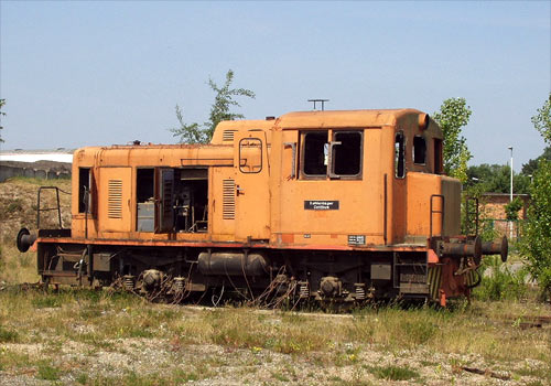 15.09.2006/ jm/ Den "Kohlehandel" darf man sich nicht etwa wie ein kleiner Betrieb mit ein paar Haufen Kohle vorstellen, sondern es handelte sich hier um die zentrale, staatliche Reserve für Kohle und damit um einen sehr umfangreichen Lager- und Umschlagplatz, welcher sich etwa 1 km entlang der Bahnlinie Cottbus-Jänschwalde zog. Heute ist das gesamte Gelände geräumt und als Industriegebiet mit neuen Straßen erschlossen. Die einst umfangreichen Gleisanlagen wurden zum Teil zurückgebaut. Verlassen und ohne Gleise sind zwei Lokschuppen auf dem Gelände zu finden. Eigene Werkloks gibt es hier nicht mehr, jedoch stehen die beiden Kaluga´s hier noch rum und werden von vermeintlichen Eisenbahnfreunden immer mehr geplündert! So wurden ganz frisch die Schilder "Kohlenhandel Cottbus" vor wenigen Tagen abgeschraubt und geklaut. Die Lokomotiven haben im Juni 1993 noch die letzte Bremsuntersuchung bekommen und die Fristen wurden bis August 1997 verlängert - das Ende der Werkbahn dürfte erst Mitte der 1990er Jahre gekommen sein.