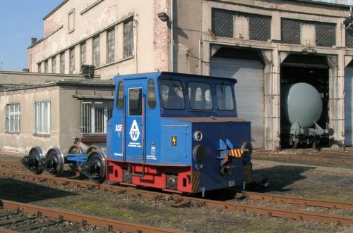 27.02.2003/ rm/ Das ASF wird zum Verschub der Radsätze im Bw eingesetzt, die V10B dient als Verschublok im Lokschuppen.