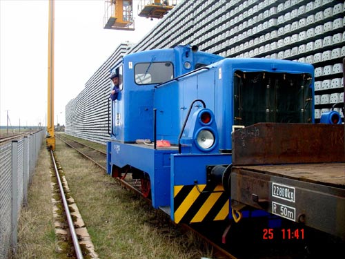 17.01.2000-info/ ms/ fl/ Die Firma Moll übernahm nach der Wende vom ehem. VEB Betonwerk Laußig dessen Spannbetondruckrohrwerk, das heute u.a. Betonschwellen und Betonhäuser für BÜ-Schaltanlagen fertigt. Das Werk nutzt heute noch seinen Gleisanschluß an die DB. Die Anschlußbahn zweigt im Bf. Laußig von der Strecke Eilenburg-Ost - Bad Düben ab und wird werktäglich von Eilenburg aus bedient. Zum Versand kommen vor allem die Betonschwellen, die in Ganzzügen abgefahren werden .Den Verschub im Werk übernimmt eine generalüberholte Lok vom Typ V 22, die vom Vorgängerbetrieb übernommen wurde.