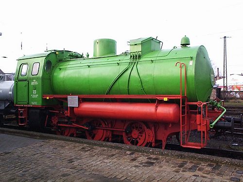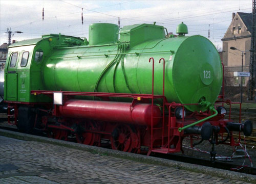 08.12.2005-info/ pz/ Die Dampfspeicherlok 123 mit Museumszug wurde am 8. Dezember 2005 vom Abstellgleis am Merseburger Bhf. geholt. Zug-/Rangierlok war Lok 17 der MEG. Der Zug kommt in den Fliegerhorst Merseburg ins dortige Luftfahrt- und Technikmuseum. Die Lok bräuchte aber eine Instandsetzung, nachdem Vandalen den Führerstand ausgebrannt haben und die Lok sehr unansehnlich war.