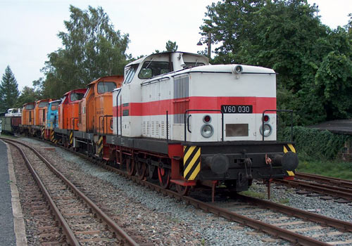 MaLoWa: Die lange Reihe der abgestellten Lokomotiven, fast alles LEW V60D. (Foto: 20.08.2005, Michael Rauner)