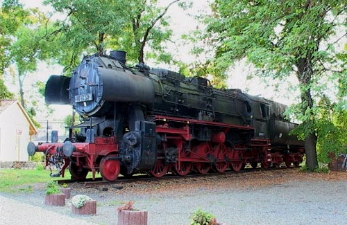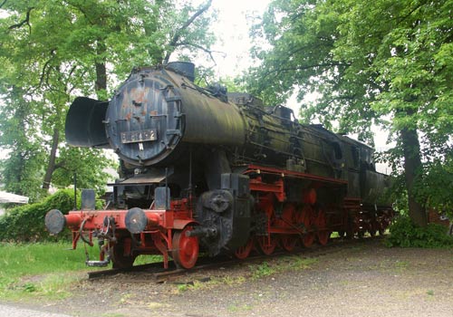 .10.2003/ mk/ Nicht weit vom Bahnhof findet man vor dem Bahnhofshotel die 52 8147. Die Lok ist zwar ziemlich vollständig, aber ihr Zustand ist ungepflegt – wenn es so weitergeht, wachsen bald die Pilze.