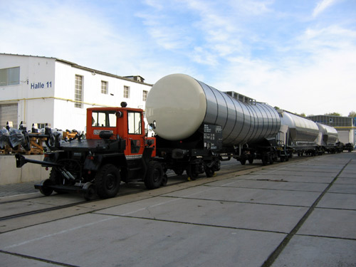 18.09.2004/ jm/ Der erhoffte Zweiwege-Traktor wurde Ende August 2004, also erst vor zwei bis drei Wochen(!), verkauft. Seit 2003 setzt man hier ein gebrauchten MB-trac ein. Das Werk ist der letzte verbliebene Anschluss an die einstige Bahnstrecke von Lutherstadt Wittenberg über Nudersdorf nach Straach.