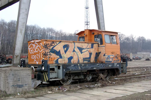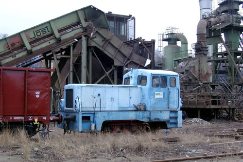 31.08.2007/ jm/ Das Fotografieren auf diesem sehr großen Schrottplatz wurde nach Anfrage ohne Probleme erlaubt. Die werkeigene V22B (LKM FNr. 262486 lt. Stangen, Br.-Rev. 28.02.2007) wurde so beim morgendlichen Rangieren abgelichtet. Ausserdem holte eine blau-weiße G 1700 (MaK FNr. 1001212/2003) Wagen vom Gelände ab. Nicht mehr eingesetzt werden die Nr. 1 (LKM FNr. 262592 lt. Stangen, HU 25.11.1997, Br. 26.03.2004) und die Nr. 2 (LKM FNr. 262204 lt. Stangen, HU 14.08.1990, verl. 14.08.2002, Br. 11.02.2002), welche neben den Gleisen stehen. Bei Nr. 1 fehlt bereits der komplette Motorvorbau inklusive Motor.