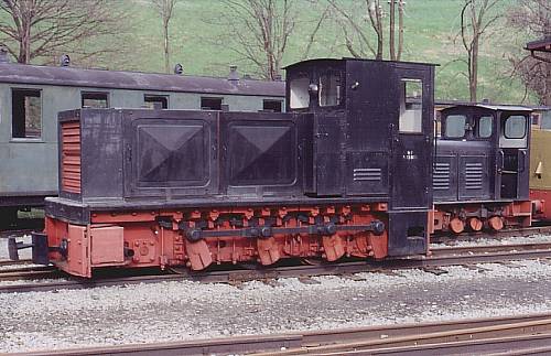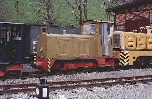 Schmalspurbahn-Museum Rittersgrün: Gmeinder FNr. 4233, diese steht mittlerweile auf Rügen. (Foto: 10.04.1992, Peter Ziegenfuß)