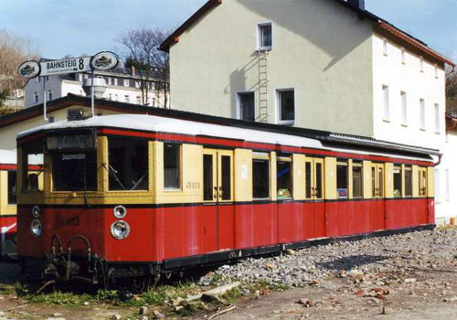 12.04.1999/ jm/ Der "475 013-9" und ein Stück des "875 013-5" der Berliner S-Bahn wird hier als Teil der Gaststätte genutzt.