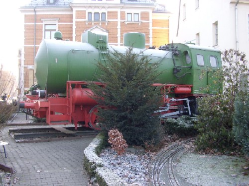 12.09.2004/ jm/ Im Garten des Museums steht - gut von der Straße aus sichtbar - eine feuerlose Dampflok und unweit davon auch zwei LKM-Feldbahndiesel. Leider war das Museum am Morgen noch nicht geöffnet, so dass die zweite Ns2f nicht näher nach einer Fabriknummer untersucht werden konnte.