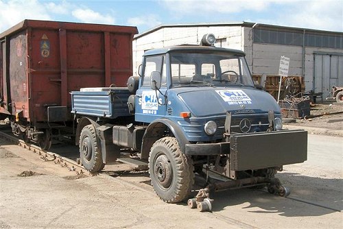 Werklok genutzte 346 779-2 und darunter der derzeit im Einsatz stehende Unimog. (Fotos: Ralph Mildner)