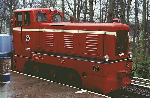 11.04.1999/ jm/ Die 6003 war auf dem Rundkurs (600 mm Spurweite) im Park im Einsatz, die anderen Fahrzeuge standen in der Fahrzeughalle: