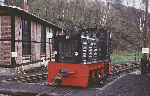 Preßnitztalbahn: Die 199 007 im Bf Jöhstadt. (Foto: 13.04.1999, Jens Merte)
