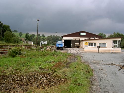05.08.2002-info/ er/ Ende der 1960er Jahre entstand auf dem Bahnhof Bienenmühle (KBS 514) ein neues Agro-Chemisches Zentrum ACZ. Auf den nicht mehr benötigten Gütergleisen des Bahnhofes wurde eine größere Düngermittelhalle errichtet und 1970 in Betrieb genommen. Für den Betrieb auf der neu errichteten Anschlußbahn (ein Gleis mit ca. 500 m Länge) wurde eine gebrauchte Lok vom Typ N4 besorgt, jedoch kam diese nie so richtig zum Einsatz, denn die Wagen wurden mit einen Zweiwegefahrzeug der Bauart RS 09 rangiert. Nur selten war die mit einen gelben Anstrich versehene Lok bis Mitte der 1980er Jahre in Betrieb, danach gab man sie an das Kalkwerk in Holzhau ab. Von da an übernahm die DR die Bedienung des Anschlußes bis zur Einstellung des Güterverkehrs 1996. Die gesamte Anlage der Anschlußbahn ist noch vorhanden.