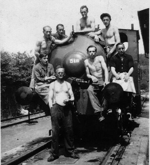 Papierfabrik Schönborn-Dreiweiden: Um 1956 entstand diese Gruppenaufnahme vor der O&K-Dampfspeicherlok der Papierfabrik Schönborn-Dreiweiden. (Foto: Sammlung Erik Rauner/Reichsbahnkay)