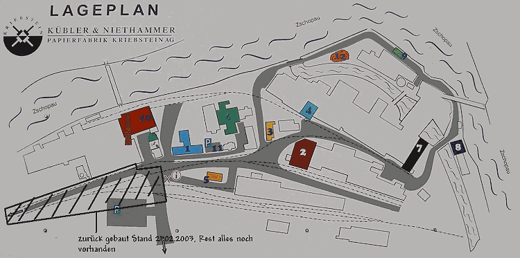 Im Bereich der Papierfabrik befindet sich ein Lageplan aus dem erkenntlich wird welchen Umfang die Werkbahn hatte. Die weitere Entwicklung sieht nicht gut aus für die Werkbahn, aufgrund der weiteren Erweiterunsbauten wird die Anschlußbahn in der nächsten Zeit weichen müssen und wird nicht wieder aufgebaut.