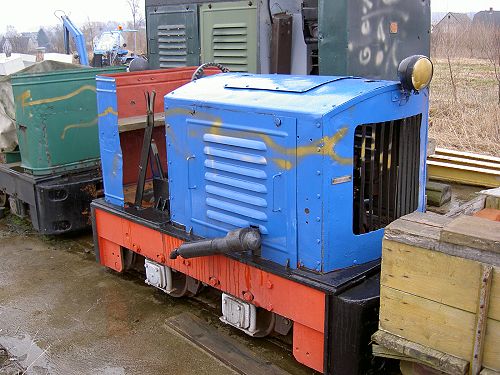 Als in den 1960ziger Jahren die von den Steinzeugwerken und der Ziegelei gemeinsam genutzten fabriknahen Lehm- und Tonvorkommen erschöpft waren, erschloß man in ca. 1 km Entfernung neben dem Depot des VEB Kraftverkehr einen neuen Tagebau. Für den Lehmtransport wurde die bereits vorhandene 600 mm spurige Feldbahn dorthin verlängert und es fand fortan eine Art "Zweigzugbetrieb" mit je fünf 0, 75 cbm fassenden Kipploren statt. Eine Lokomotive pendelte ständig zwischen beiden Werken und einem ca. 400 m von der Lehmgrube liegenden Ausweichgleis, die zweite zwischen diesem Gleis und der Grube. Um den jeweils von der anderen Lok erbrachten vollen bzw. leeren Zug übernehmen zu können, mußte an der "Ausweiche" jedesmal rangiert werden. Dafür versah man die Weichen mit einer selbst gebauten, primitiven Rückstelleinrichtung, die ein Umstellen von Hand überflüssig machten. Allerdings war es durch diesen Betriebsablauf notwendig, daß die Loks ihre Züge vom Ausweichgleis aus, sowohl in Richtung Grube, als auch in Richtung Ziegelei schoben.