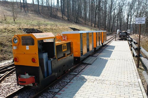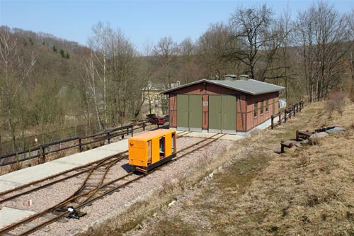 12.06.2003/ er/ Auf der Trasse einer ehemaligen Erzbahn wird zur Zeit eine Strecke mit ähnlichen Zweck aufgebaut, jedoch soll mit dieser Bahn ins Bergwerk zu Besuchzwecken eingefahren werden! Zu diesen Zweck wird eine ca. 800 Meter lange Strecke in 600 mm Spurweite angelegt. Bereits errichtet wurde ein Lokschuppen (im sächsischen Stil) und ein Betriebsbahnhof sowie ungefähr ca. 500 Meter der Strecke. Zum Einsatz kommen auf dieser Strecke ebenfalls bergbautypische Fahrzeuge sowie zwei Lokomotiven vom Typ EL 9 mit den Namen "Ute" und "Christiane". Der Großteil der hier vorhanden Fahrzeug soll aus Wismut Beständen stammen. Die Bahn wird betrieben vom Förderkreis für den historischen Bergbau im Mittleren Zschopautal Sachsen e.V..
