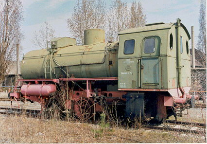28.06.2004-info/ hg/ Bereits im September 2003 wurde hier eine minilok (TransLok) Typ DH 90 gesichtet. Die Dampfspeicherlokomotiven fahren wohl seit Sommer 2003 schon nicht mehr, die Maschinen stehen/standen zum Verkauf. Zur Zeit (Juni 2004) ist noch eine abgestellte Dampfspeicherlok zu sehen.