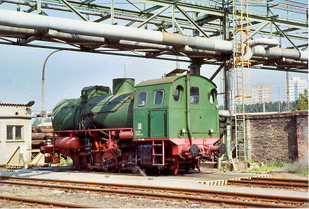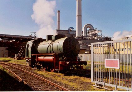 23.09.2004/ jm/ Auf dem Werksgelände wurde die letzte Dampfspeicherlok als Denkmal aufgestellt, nachdem im Mai 2003 der Einsatz der Dampfspeicherlokomotiven endete. Die neue minilok konnte nicht gesichtet werden.