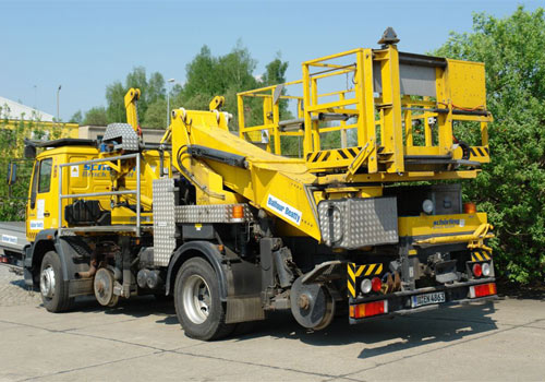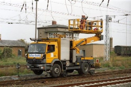 28.04.2007/ er/ In Mittweide wurde 97 59 03 512 60-9 angetroffen, ein Zweiwege-LKW Typ MAN 18.280 mit Hubarbeitsbühne (Art: ZW-OMF-3T-K, 16 t Eigengewicht, 40 km/h maximal, Abnahme 09.06.2004). Schörling-Brock FNr. 2003-11-0143, Baujahr 04.2004.