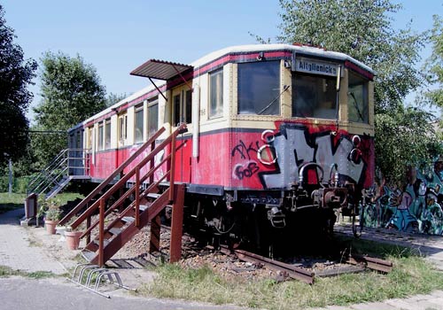 14.08.2006-info/ hg/ Hier steht der ehemalige S-Bahnwagen 475 076 als Jugendclub. Er befindet sich direkt an der Straße, 10 min Fußweg vom S-Bf Hohenschönhausen entfernt.