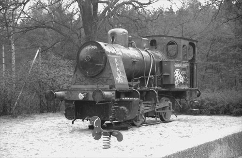 Spielplatz, Titusweg: Als Peter Ziegenfuß die Lok am 26. April 1991 ablichtete, da fehlte der der Lok der Schornstein.