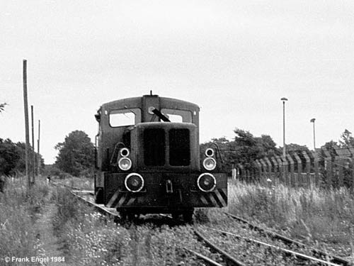 28.03.2005-info/ fe/ Neben der CFF gab es an der Eberswalde-Finowfurter Eisenbahn (EFE) noch diverse Anschließer mit eigenen Loks. Anbei mal ein Bild der blauen V18 (LKM 261318/1963) des VEB Imprägnierwerkes Hubertusmühle (Finowfurt). Die Werklok verließ das Werk eigenlich nie, so dass es schon höchst verwunderlich war, dass sie mir im Juli 1984 auf der freien Strecke in Richtung Eberswalde in km 8,1 entgegen kam...