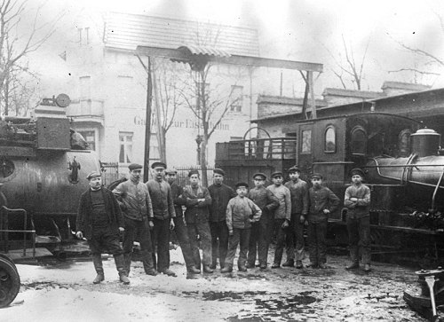 Unten steht rechts eine der ehemaligen russischen Heeresfeldbahnlokomotiven, die hier umgebaut und dann wieder verkauft wurden. (Fotos: Sammlung der Familie Hoffmann)