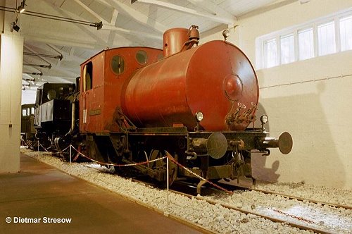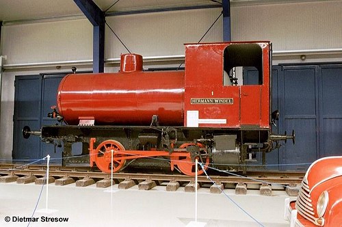 Museum Prora: Die beiden feuerlosen Lokomotiven stammen aus Bielefeld, oben die Nr. 1, Henschel 17761/1920,