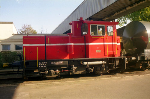 21.04.1999/ jm/ Zur Zeit ist nur die KHD-Lok 58176 im Einsatz, die zweite (Gmeinder 5550) ist zur Zeit zur Aufarbeitung bei der NEWAG. Nach den Angaben eines Lokführers gab es hier früher mal eine feuerlose Lok und eine alte Diesellok mit Glühkopfmotor.