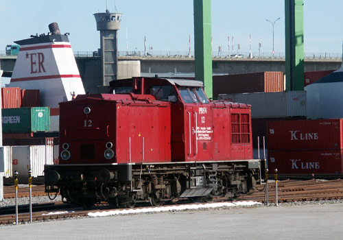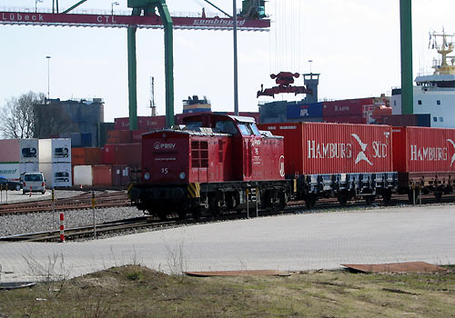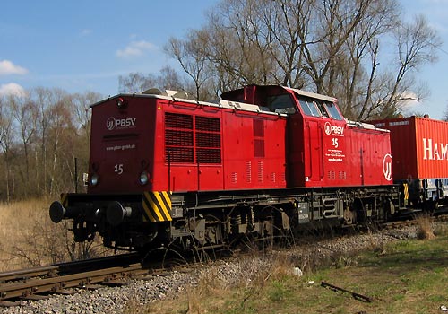 15.04.2006/ jm/ Im Einsatz beim Rangieren von Containerwagen war die PBSV Nr. 15 (LEW V100).