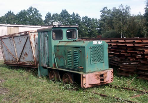 Nach längerer Abstellzeit hat die historische Diema-Lok eine Aufarbeitung erfahren und ist nun wieder einsatzbereit. Der weitere, ältere Teil des Lokparks ist in den 80er Jahren wohl verschrottet worden (Schöma-Loks ?) bzw. nach Diepholz in Zahlung gegeben worden (Diema 841 ?).