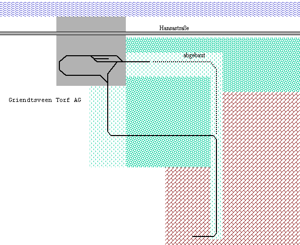 10.08.1996/ uv/ Was gerüchteweise schon umlief, konnte jetzt mit eigenen Augen begutachtet werden: Im Torfwerk ist verschärft aufgeräumt worden, es liegen keinerlei 600 mm-Gleise mehr. Statt dessen läuft jetzt alles auf 900 mm, allerdings mit etwas sparsamerem Gleisnetz! Die Ausfahrt parallel zum Küstenkanal in Richtung Oldenburg besteht nur noch aus einem Ausziehgleis, das Moor wird direkt vom Werk ausgehend durch eine landeinwärts führende Strecke erschlossen.