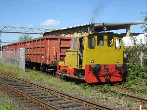 26.06.1995/ uv/ Schon früh morgens war ein vor dem geschlossenen Werkstor zugestellter Waggon zu beobachten, am Nachmittag war dann auch die gelbe Deutz-Lok auf dem Schrottplatz zu sehen. Außer dem großen Fabrikschild (55418) und einem Schild auf dem Motor (Nr. 1372785/88) trug die Lok noch ein kleines Inventarschild am Führerhaus (... Aufschrift leider nicht notiert!).