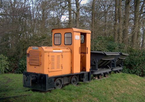 .02.2008/ dr/ Die Lok ist noch immer vorhanden mit Ihren Loren vor dem Bürogebäude. Auch sind auf dem Platz noch diverse Loren und Schienen gelagert. Die Lok war im Deichbau eingesetzt.