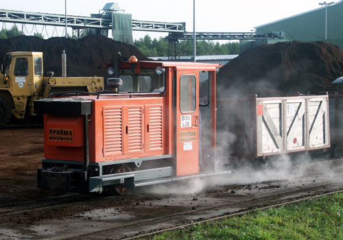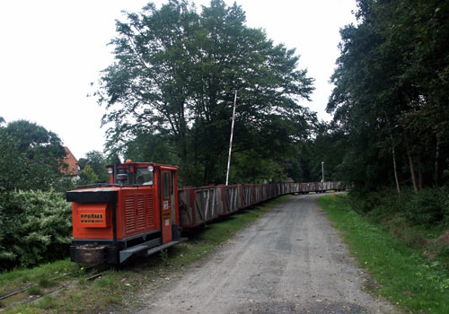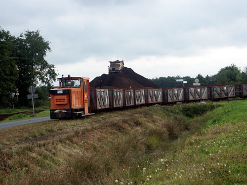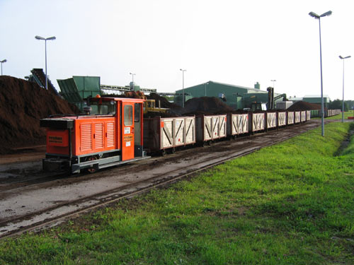 Torfwerk Koch: ... mit dem leeren Zug geht es dann am Werk vorbei ... (Foto: 12.09.2005, Jens Merte)