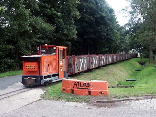 12.09.2005/ jm/ Das Torfwerk liegt am Ende der Moorgutstraße, gut 4 km von Saterland entfernt direkt unterhalb der weit sichtbaren 350 m hohen Sendemasten der Marine. Im Einsatz wurden zwei moderne Schöma angetroffen, wobei die eine die östliche Strecke ins Westermoor befuhr, die andere die relativ neue, westlich vom Werk gelegene Strecke, welche die Strecke von Griendtveen kreuzt und eine Verbinung zur alten Union-Strecke hat. In der Werkstatt, die nach Fragen besichtigt werden durfte, wurden mehrere Maschinen (wohl betriebsfähig, aber) abgestellt vorgefunden, eine weitere stand in der Werkstatt (Schöma FNr. 989/1948) und zwei im Schuppen (Nr. 1 und Nr. 10) mit den Wagen für die öffentlichen Moorbahnfahrten ("Seelter Foonkieker"). Damit ist der aktuelle Gesamtbestand erfasst.