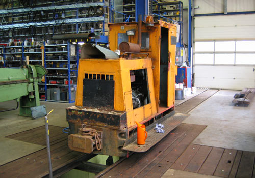 Torfwerk Koch: Blick in die Werkstatt: Die fast 60 Jahre alte Schöma FNr. 989. (Foto: 12.09.2005, Jens Merte)
