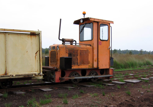 11.09.2005/ jm/ An der Verladung an der B 401, die ohne Verbinung zum Werk in Sedelsberg ist (sie liegt zwischen der Verladung von Weener und Griendtsveen), standen zwei Maschinen: 41/6350 und Schöma FNr. 5723. Dieser Werksteil ist aus dem Bockhorster Feldbahnnetz entstanden, welchen Klasmann-Deilmann vor Jahren übernommen hat - deshalb wird dieser Betriebsteil auch als BT Bockhorst bezeichnet. Das Torfwerk in Bockhorst und die Verbindungsstrecke dahin wurde aufgegeben und stattdessen wurde die heutige Strecke zur neuen Verladung an der B 401 errichtet. Da es zwei Verladestellen von Klasmann-Deilmann an der B 401 gibt, die nicht weit entfernt von einander liegen (es gibt aber keine Schienenverbindung), ist die hier beschriebene Verladeanlage entsprechend ihrer Lage als Verladung "West" gekennzeichnet.