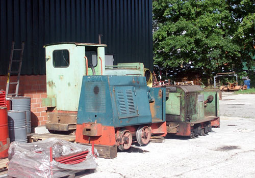 Torfwerk Sauensiek/Hatzte: Der Gesamtbestand vom Werk Hatzte auf dem Werkshof in Sauensiek, vorne in der Mitte die Diema FNr. 1196, dahinter rechts die Diema FNr. 2852 und links Schöma FNr. 2656. (Foto: 16.09.2005, Jens Merte)