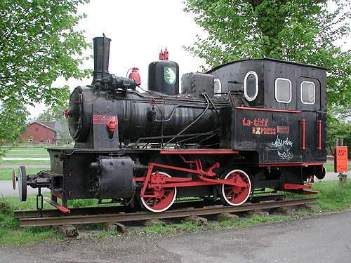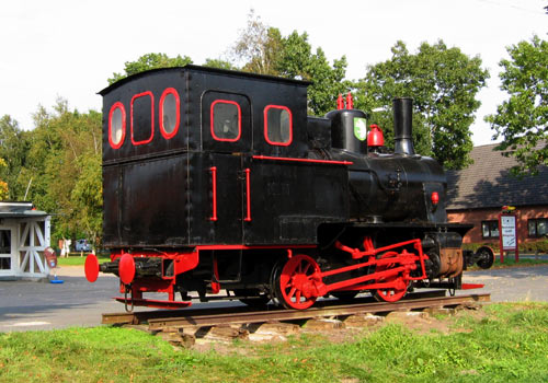 25.09.2005/ jm/ Die Dampflok steht beim Parkplatz. Sie ist an manchen Stellen zwar durchgerostet, jedoch hat man mit Farbe nicht gespart und so sieht die Maschine aus der Entfernung noch recht passabel aus. An den Stangen findet sich die Schlagzahl 13051.