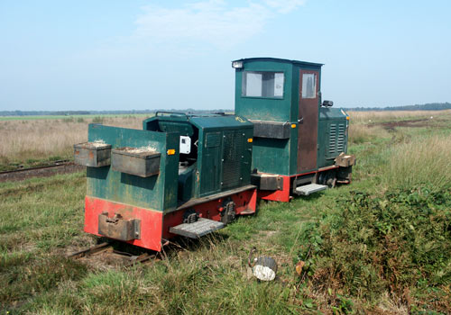 25.09.2005/ jm/ Bei der Torfmiete wurden die Lok 12 (Diema 1739) und die Nr. 20 (Diema 1848) angetroffen. Im Werk beim Huvenhoopsmoor dienen Garargen als Lokschuppen, es standen keine Loks draussen.