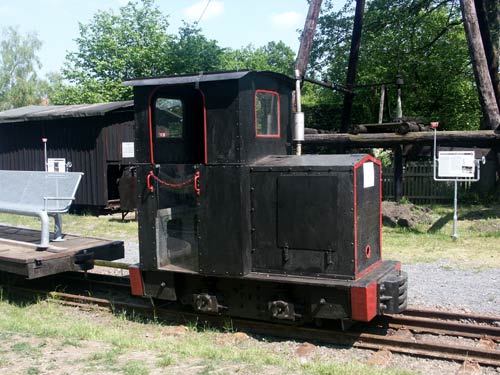 29.05.2004/ jm/ Schon vom Ortsausgang kann man den hohen Förderturm sehen. Neben diesem beeindruckenden Exponat sind noch etliche andere interessante Maschinen auf dem Gelände anzutreffen. Etliche Hinweistafeln informieren über die gezeigten Maschinen und auch die Ausstellung im Haus des Museums ist informativ und interessant. Wer also etwas Zeit mitbringt, der hat die 4 Euro Eintritt gut investiert. Zu sehen gibt es auch drei Lokomotiven, von denen die Schöma (Dicke Berta) und die Budich (Emma) offensichtlich betriebsfähig sind. Für diese beiden Maschinen wurde ein Rundkurs verlegt, interessanter Weise in Doppelspur 600 und 900 mm inklusive einer Weiche und einer Aus- und Einfädelung der beiden Spurweiten auf dem Rundkurs.