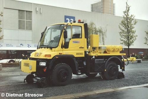 Die Firma Zweiweg war mit drei Fahrzeugen vertreten, einem neuen und einem alten Unimog (bezogen auf den Typ !), sowie einem MAN Lkw des Typs 18-225. Das 2-Wege-Fahrzeug der Chemion trägt die Fahrgestellnummer "WOB4051021W197839" und wurde am 01.03.2002 in Dienst gestellt. Das 2-Wege-Fahrzeug der EMA ist ein sogenannter "Railstar 2000", ein Unimog mit ringsum verlaufendem zweiten Rahmen.